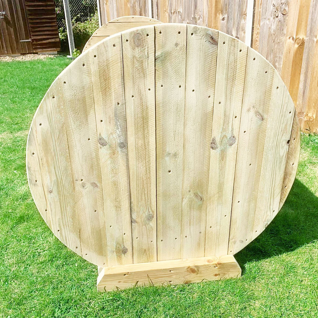 The bench is made of pressure-treated pine timber and ready to stay outside or painted as your preference. It is strong and weather-resistant, so you can safely use it outdoors all-year-round without risk of damaging or rotting. The treated wood gives every picnic bench its own slightly greenish colour - perfect for adding a rustic feel to your outdoor areas.