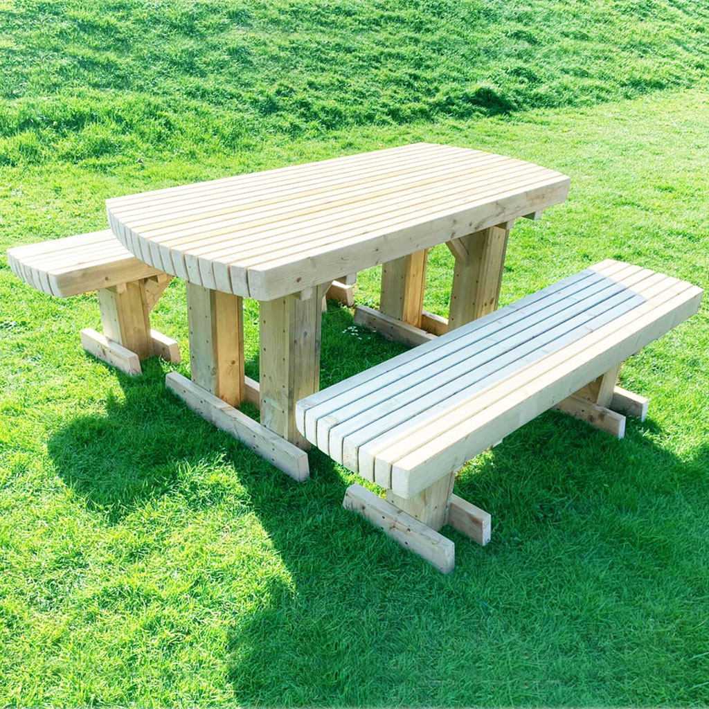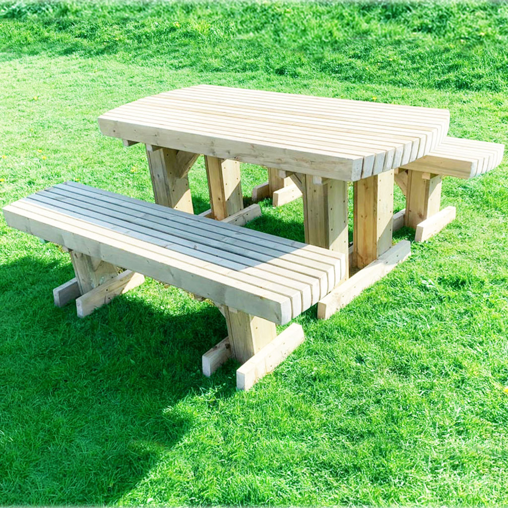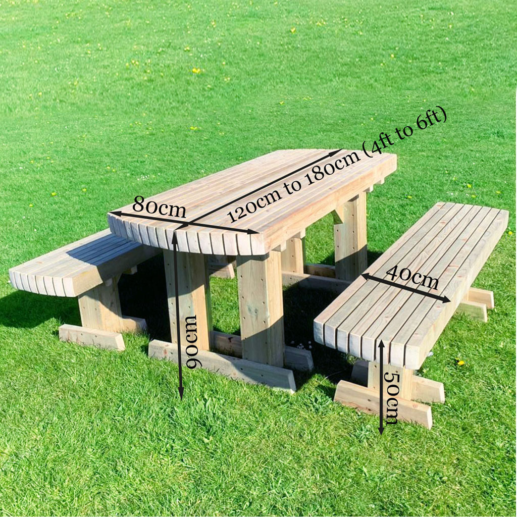 Make the most of your outdoor spaces with this unique and stylish garden picnic table. It has been manufactured by us from pressure-treated pine timber and ready to stay outside or painted as your preference. This picnic bench is strong and weather-resistant, so you can safely use it outdoors all-year-round without the risk of damaging or rotting. The treated wood gives every picnic bench its own slightly greenish colour - perfect for adding a rustic feel to your outdoor areas.