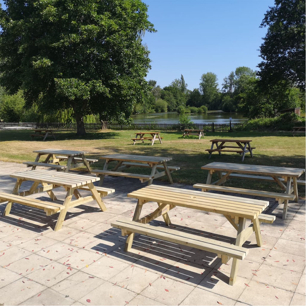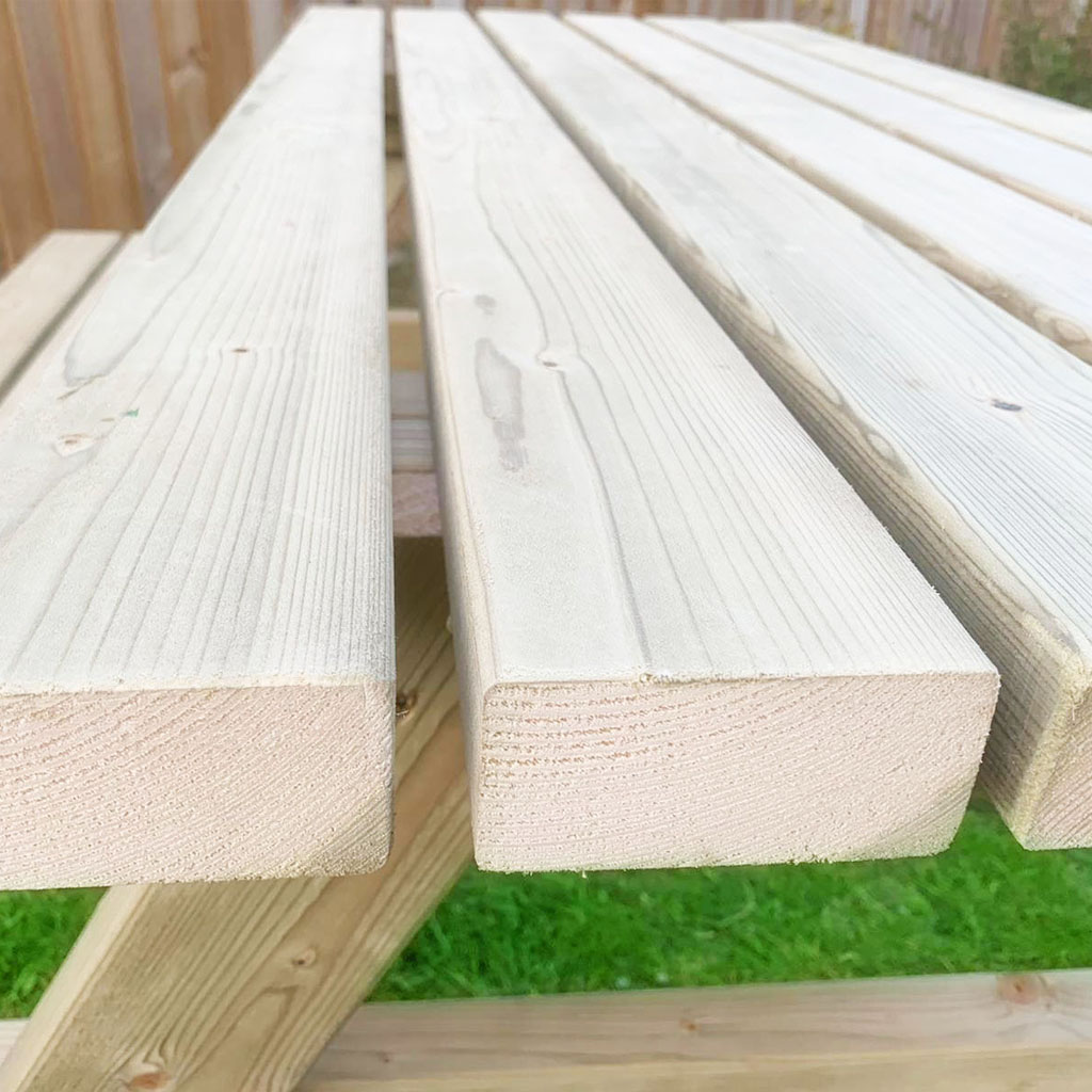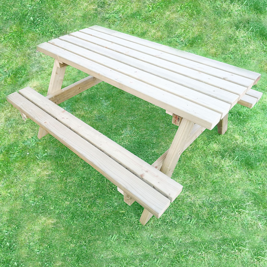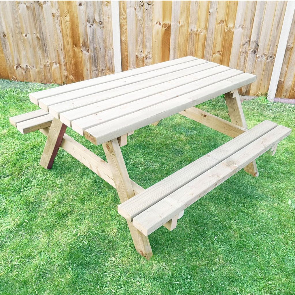 Upgrade your outdoor or patio with a high-quality garden picnic table. Our very popular picnic table has been manufactured by us of pressure-treated pine timber and ready to stay outside or painted as your preference. The picnic bench is very strong and weather-resistant, so you can safely use it outdoors all-year-round without the risk of damaging or rotting. The treated wood gives every picnic bench its own slightly greenish colour - perfect for adding a rustic feel to your outdoor areas.